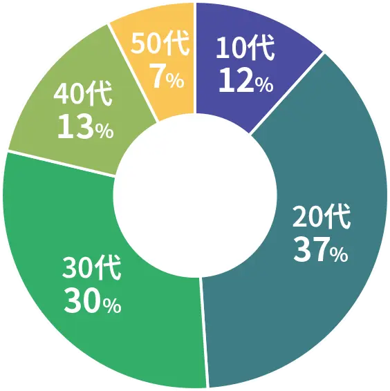 ぷろぼの津事業所では、男性・女性ともにほぼ同じ割合でご利用いただいています。性別に関係なく、それぞれの特性や希望に寄り添った支援を行っており、誰もが安心して通える環境づくりを大切にしています。個別プログラムやテレワーク対応など、多様なニーズに応える体制が整っています。